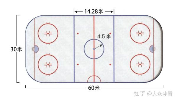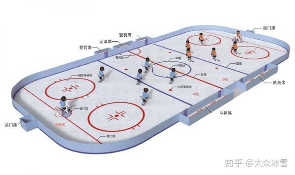 冰球比赛的时间为60分钟,共分三局,每局20分钟,局间休息15分钟。每队每场可派遣队员20名,但同一时间上场比赛的队员只有6名,其中包括1名守门员。 把球用冰球杆射入对方球门内为射中一球,得1分。进攻的一方若将球用脚踢入,用手扔入、打入或用冰球杆以外的物体导入球门,则不算射中。