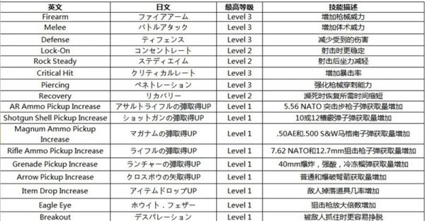 生化危机6技能都有哪些?这些技能都有什么效果,本文为玩家们带来的是生化危机6技能全面分析,附带中文翻译及隐藏技能说明。