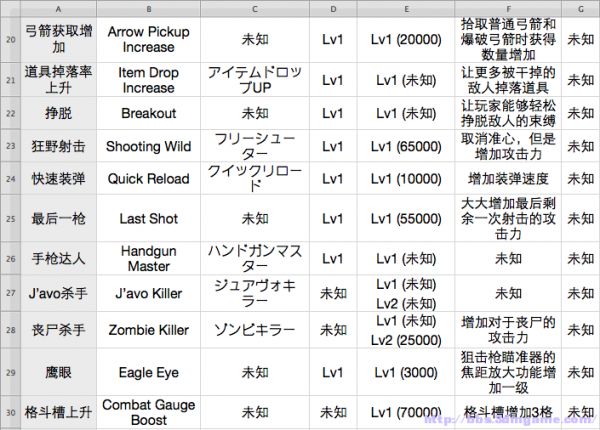 【无限子弹类】要求Leon,Chris,Jake,Ada四个主线剧情模式全通关后可用技能点购买。