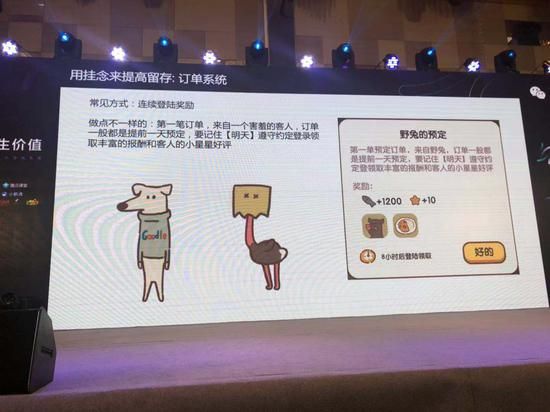 我们这个系统有两个目的。第一个目的是它做到了逻辑自洽,在餐厅里存在外卖订单是很自然的;第二个点是我们达到了吸引玩家次日登陆的目的,因为他还有一个任务没完成,这是他的一个挂念。