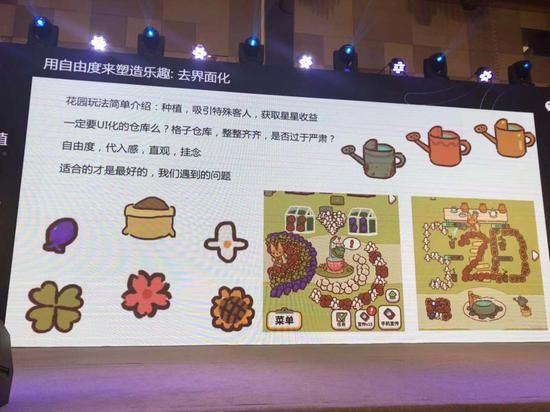 于是我们就大胆地将背包去掉,让玩家所有的花都落下来,凌乱的散落在整个花园里。在刚开始的时候也会有一些顾虑,结果却是玩家的策划能力、创造力非常的强。在我们给了他们这样一个工具之后,他们依靠自己的想象力去发挥、创造出了这些东西。