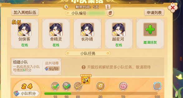组建集结小队,在每周五12:00正式开服后完成升级任务,可领取丰富奖励