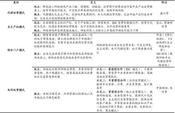 从运营商的角度来看,经过网络游戏多年的发展,国内游戏产业已形成四种运营模式,分别是代理运营模式、自主产权模式、综合门户模式和电信运营模式。