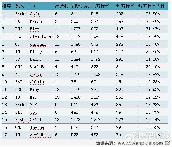 小编总结:Sofm是一位实力非常强的选手,这个刷野环的设计体现了他缜密细致的思维,但他的打野风格并非无懈可击。对于他的入侵风格,可以在野区入口处放眼并配合辅助的游走支援,可以比较轻松地拦截Sofm的入侵。而且Sofm目前还没有和联赛最强的几只队伍交手,再面对强敌时,他是否会拿出新的套路和打野思路出来,值得我们期待。