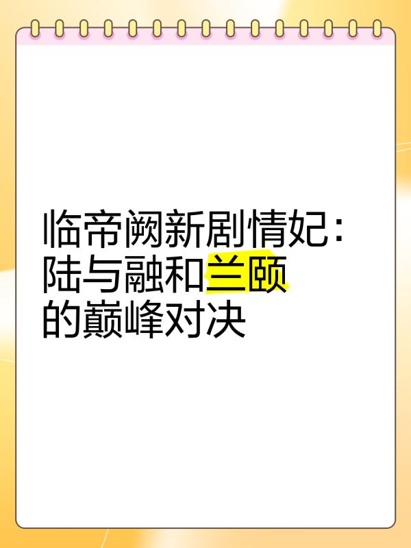临帝阙新剧情妃:陆与融和兰颐的巅峰对决 ...全文