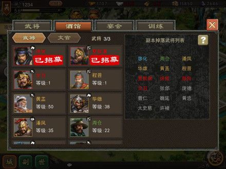 ● 只要在副本中击败特定可招募的武将,即可在酒馆中招募该武将。