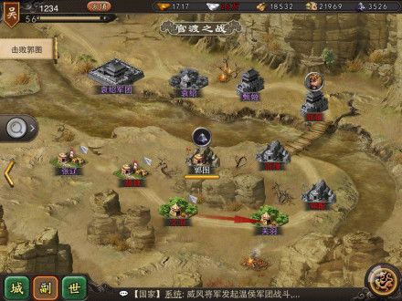 国战借兵终极攻略:武将各路分兵,在攻防必经的关隘处,各自借兵,刷出来的影子在国战中损耗,武将真身将获得影子的所有经验。