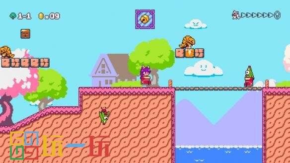 游戏玩法回归经典,致敬GB时代的《超级马里奥》系列。玩家可以通过踩踏名为“pangos”的生物,并将其用作投掷武器,击退路上的敌人。此外,游戏中还包含特殊装扮,如变身为鲨鱼或者或者通过制作杆子来跳墙的幕府将军。