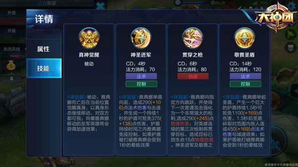 技能加点:二技能可以提高雅典娜的输出能力,并且随着等级的提升,冷却时间也会不断减少,这也可以让雅典娜更快的打出三环;一技能主要起一个控制作用,所以选择主二辅一,有大点大。