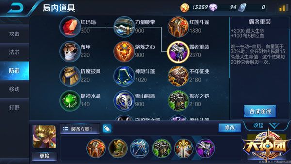 中期出装:中期先合成坦克通用装——红莲斗篷,这件装备的成长属性很不错,灼烧效果可以间接的增加雅典娜的输出,然后鞋子方面做出忍者足具,因为雅典娜自身是可以免疫控制的,做忍者足具的收益会更高一些。