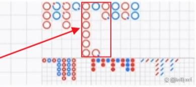 雷区5:金手指(打长龙回头不过3的时候一定要避免一个叫金手指的路数,什么叫做金手指,图中箭头所指处便是金手指(这并不是完全的金手指,算是小金手指),它是几条龙连起来的路数,千万不要在这种路数上去打长龙回头不过3,)
