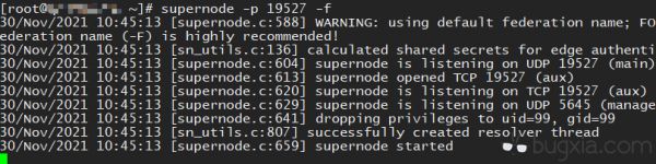 #实际使用时,可以去掉 -f 参数,使其后台运行 supernode -p 9527 -f