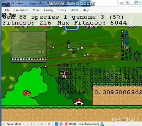 神经演化算法(Neuroevolution)主要是用演化学习的思想来调整神经网络的结构和权重。通常我们是用梯度下降的方法来更新神经网络的结构,但是如果我们不能很好的用监督学习的方法来训练神经网络的时候(例如训练的神经网络的loss function没法微分(differentiable),或者我们没有一个很好的标注的训练样本),这个时候我们就要考虑演化学习的框架了。这个在游戏AI中经常能够遇到,比如我们很难定义一个行为是不是好的(如王者荣耀中,一个英雄在某个场景中使用某个技能是好的还是坏的)。而在演化学习的框架下,我们只需要考虑一个对Solution(某个训练好的神经网络)的度量(fitness function)。其中基于NEAT算法(NeuroEvolution of Augmenting Topologies 增强拓扑的神经网络进化), 人们开发了可以玩马里奥的AI,具体的代码实现可以看下面的链接。