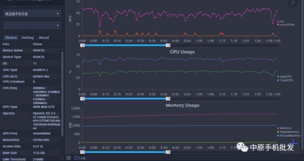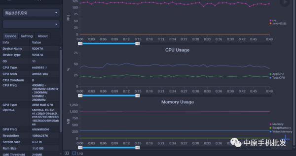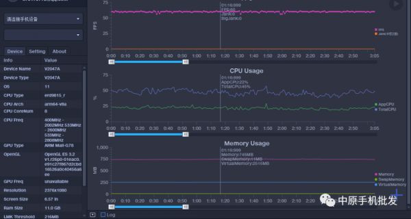 《原神》是一款大型3D开放世界RPG手游,这款游戏在场景中采用了大量的3D建模和实时渲染及光照技术,这对于手机来说,真的特别吃配置。我们在《原神》中,将综合设置调为极高,帧率调到60帧,地点选择在璃月港,把时间调到夜晚,实测其平均帧数为48.67帧,最高帧数为60帧,各位对这个帧率波动不要感到意外,目前还没有手机能满帧运行,它的整体表现和骁龙865机型比较接近。