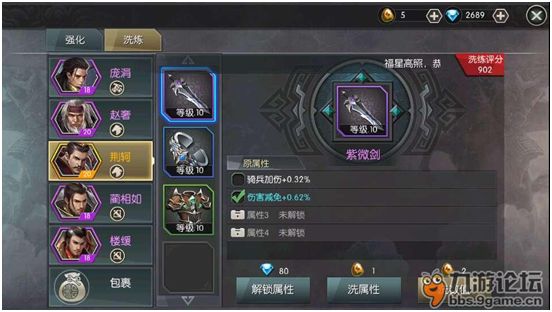 如果解锁属性,解锁到并不适应当前武将的属性或者解锁的属性较低,想获取更高数值的属性,可以进行属性洗练属性洗练分为两种,洗练属性和洗练数值,洗练属性是更换该此条属性,洗练数值则可以更快此条属性的加成程度。