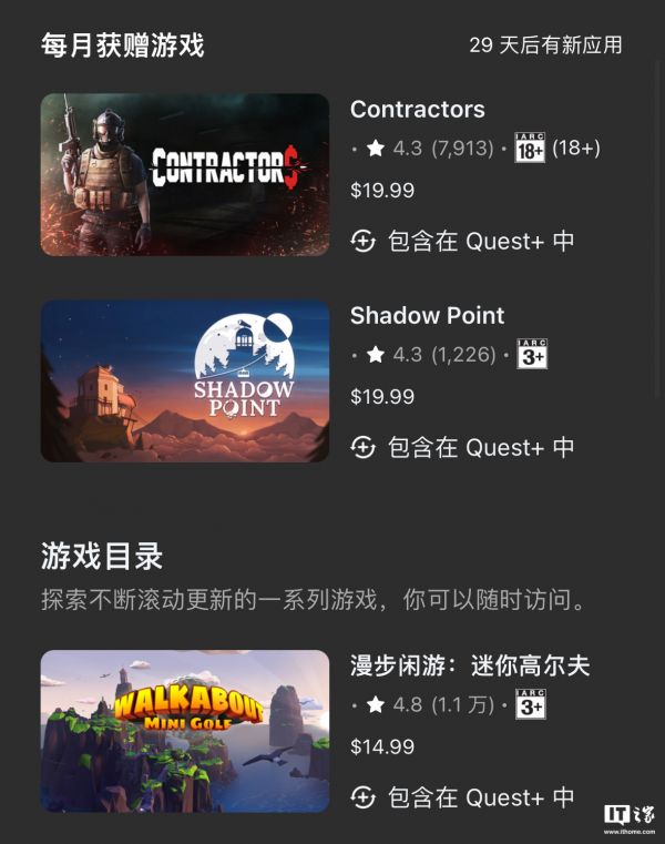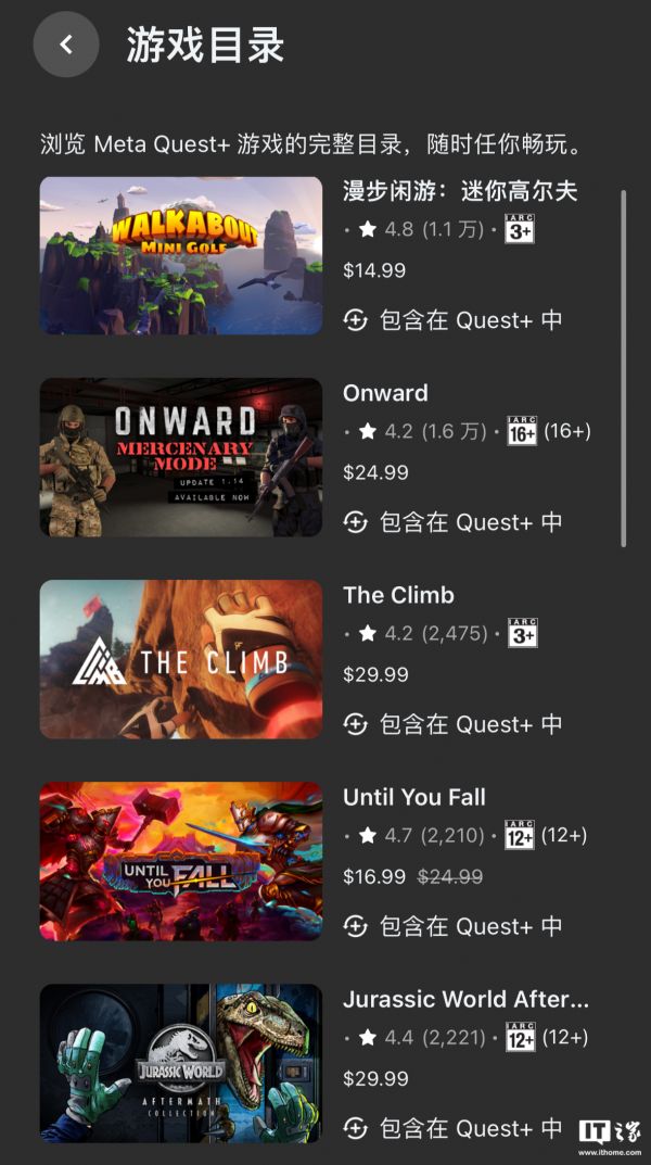 Meta Quest+ 订阅服务“游戏目录”功能现已上线,收录每月会免 VR 应用