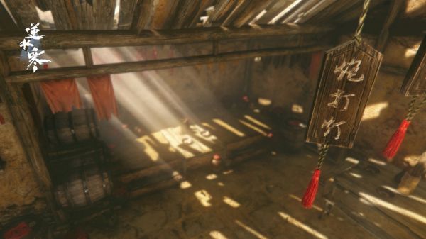 旗亭酒肆位于《逆水寒》世界中的宋辽边境,在绿林好汉集结的抗辽要塞连云寨山下,是这片黄沙漫漫的疆场中一处供人落脚歇息的小店。而Enlighten实时全局光照技术的加入,也为玩家打造了一个全新动态光照变化的世界。也正是得益于Enlighten全局光照技术,《逆水寒》的每个场景都能变化出数十种光照效果,这对玩家而言将是一个完全的动态游戏体验。