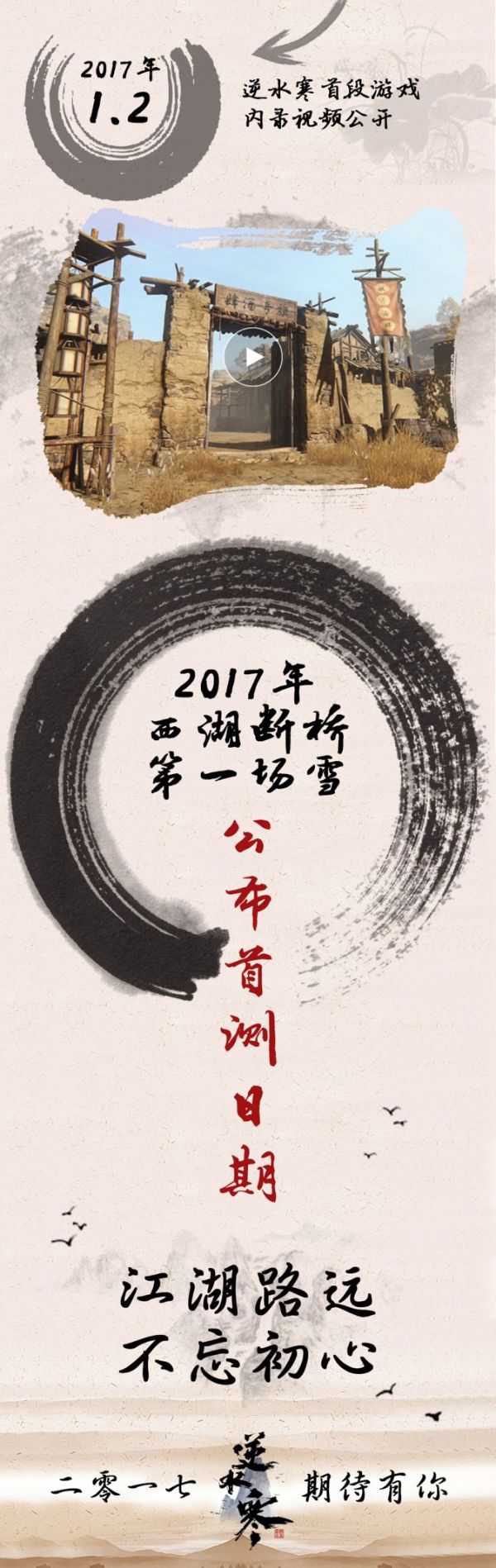 对于大家最关心的游戏测试,《逆水寒》官方最近也终于给出了回应——2017年第一场雪落在西湖断桥的时候,他们将宣布首测信息。但或许也正是这份随性与恬淡,才让《逆水寒》可以在端游式微的当下坚持四年开发,不为市场所动。江湖路远,初心不变。期待这款特立独行的武侠游戏——《逆水寒》,为我们带来不套路的江湖体验!
