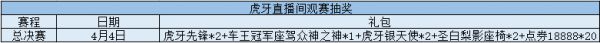观看公开赛决赛即可参与虎牙直播间抽奖,有机会获得永久A车虎牙先锋、虎牙银天使,永久座椅圣白梨影座椅,上万点券奖励,更有车王座驾S车众神之神相送!