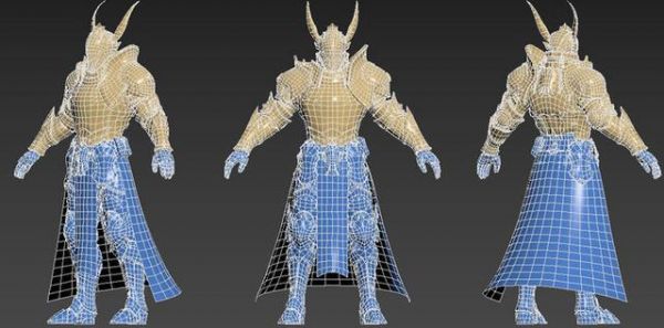 在高模制作完成后会制作低模,低模会根据高模减少面数,尽量保证角色轮廓匹配的情况下进行优化,由于在手机游戏运行中需要考虑性能的问题,因此游戏使用的实际上是低模,在精简面数同时要合理布线以方便后续角色动画的制作。