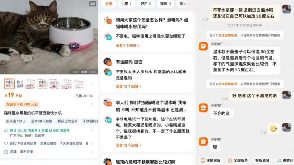 “小7”告诉惊蛰研究所,现在用酸奶机代替宠物饮水机的操作已经很常见了,甚至当初自己买的那家已经在商品页加上了“猫咪温水款”的标签,还有相当一部分商品提问是关于宠物的。