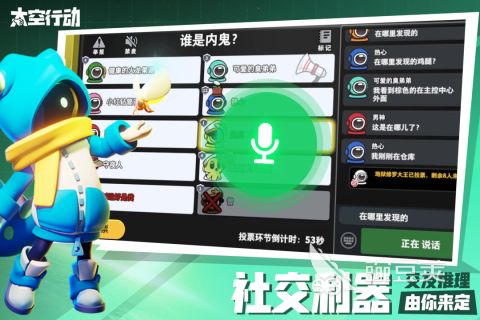 相信大家都在桌游社里玩过狼人杀游戏,这也是当下年轻人最爱的一类社交桌游,通过各种辩论,多方位的角色,和推理的效果,让各位参与其中的玩家们,来上一场唇枪舌战。而这一款游戏,便是狼人杀的全新模式,身份卡牌也转化为各种和太空有关的职业,玩家可以在游戏里,实现一秒匹配来找到和自己一样,爱玩狼人杀的好友,做到秒开局秒上线的便利玩法,不用在局限于场地和人数的限制之中,而且还有各种休闲玩法,如卧底玩法和我画你猜模式,用这些休闲的方式,来取得和游戏玩家的联系,每一句的语音也是无限制,随时都可以开麦发言,还能聊一聊游戏之外的话题。
