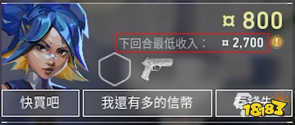 局内武器技能护甲的购买都是平铺在画面中,玩家可以调整屏幕显示的透明度,相比于CS的轮盘购买更容易操作。玩家每一局选择的角色左上角可以看到目前经济与下回合最低收入,方便新手玩家规划好经济,如果到决胜局只能买起一把手枪半个甲,那就尴尬了。