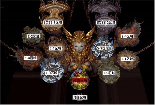 ③进入1阶段区域的传送门后,将被随机传送至2-1、2-2、2-3、2-4这四个区域的其中一个,老规矩将怪物全部清理,打败BOSS后还会出现一个遗产箱,打爆遗产箱后就可以通过传送门前往最后的BOSS区域啦。