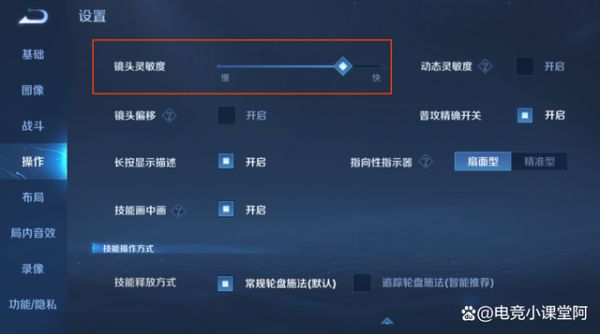 镜头灵敏度是可以让我们看到全图视野的操作,这个操作的灵敏度高低都可以自己去调整,调到自己合适的位置即可,这个设置也是高手代练都会打开的设置,可以时刻关注战场的对战情况,可以看到对方交了什么技能,没了什么技能。
