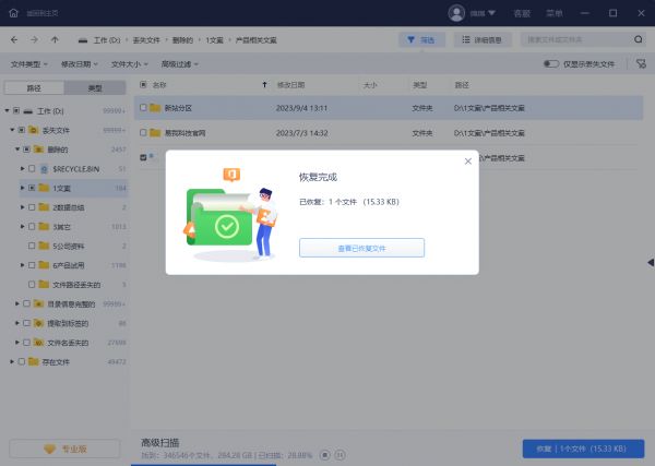这主要是看丢失的数据是否被新数据所覆盖,如果数据没有被完全覆盖的话,那么我们可以借助数据恢复软件进行恢复,如果文档已经被覆盖,则难以再被成功恢复。