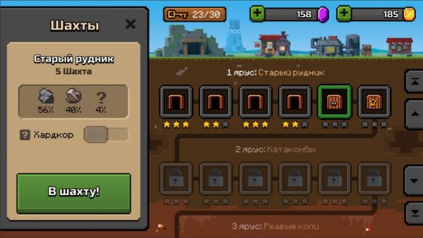 这些矿产由不同的楼层围绕,每个楼层都有六个矿藏,为了达到下一个楼层,你需要打败boss,开启最后一个矿藏的石门,为了开这扇门,你就需要从宝箱里获得的钥匙。