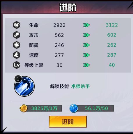 然而,当卡牌英雄达到一定等级后,单纯的经验积累已不足以支撑其进一步成长。此时,需要借助【进阶石】和【金币】来进行进阶。进阶是卡牌角色成长过程中的重要环节,它不仅能让角色的基础属性得到质的飞跃,还可能解锁新的技能或增强现有技能的效果。
