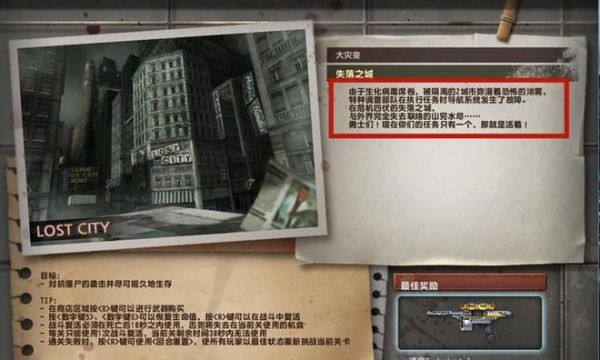 以“大灾变”模式最初的“失落之城”为例,在这个地图中玩家不需要消灭BOSS或是完成其他目标。所有玩家的目标只有一个,那就是在如潮水般四面八方疯狂进攻的僵尸大军手中存活下来……