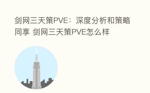 剑网三天策PVE:深度解析与攻略分享