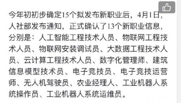 近些年,电子竞技行业逐渐越来越完善,越来越被主流社会所接纳。电竞行业也养活了越来越多的从业者,在今年年初初步拟定了15个新增职业之后,今年四月一号人社局正式发布通知,宣布新增13个职业类别。其中和电竞相关的职业有两项,它们分别是电子竞技员和电子竞技运营师。