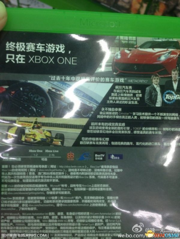 在被曝光的国行游戏包装盒背面写有:请使用内附游戏验证码激活游戏光盘,代码为一次性使用且仅适用于专为中华人民共和国而设计的Xbox one 系统。代码是不可退换,不可兑换现金,如遇篡改或已激活恕不更换。