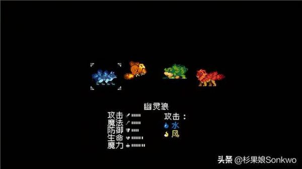 首先游戏的开局就有着宝可梦的影子,玩家需从幽灵狼、幽灵鹰、幽灵蟾、幽灵狮四个主角魔物中选择其一作为自己的第一只魔物,并在它的陪伴下开启自己的冒险。纯黑背景搭配四只形态各异魔物的画面,让人不禁回想起了曾经真新镇的小智在大木博士研究所挑选宝可梦的一幕。另外还有魔物日志的存在可以帮助玩家记录所遇到的每一只魔物的各项信息、属性,以及背景故事设定等,是不是也有一股浓厚的精灵图鉴的味道?