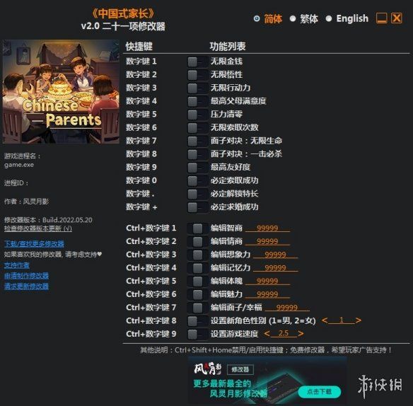 >>>《中国式家长》v2.0二十一项修改器风灵月影版