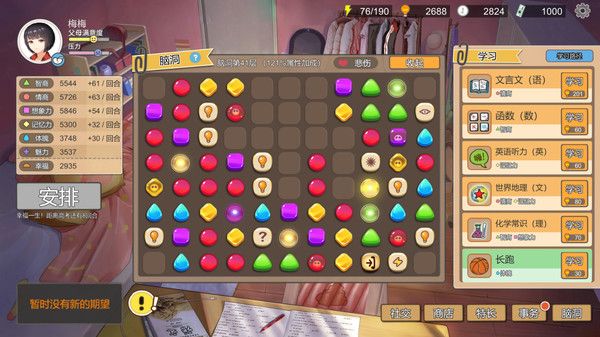 玩家扮演一名家长,负责孩子的教育。游戏提供了丰富的课程选择,包括语文、数学、英语、音乐、美术等,玩家可以根据孩子的兴趣和特长进行选择。通过参加学校的考试和活动,孩子可以获得成绩和经验,这些都会影响孩子未来的职业选择和生活状态。