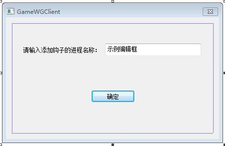 0-15.Specifies the repeat count. The value is the number of times the keystroke is repeated as a result of the user's holding down the key.16-23.Specifies the scan code. The value depends on the OEM.24.Specifies whether the key is an extended key, such as a function key or a key on the numeric keypad. The value is 1 if the key is an extended key; otherwise, it is 0.25-28.Reserved.29.Specifies the context code. The value is 1 if the ALT key is down; otherwise, it is 0.30.Specifies the previous key state. The value is 1 if the key is down before the message is sent; it is 0 if the key is up.31.Specifies the transition state. The value is 0 if the key is being pressed and 1 if it is being released.接下来我们去新建一个MFC exe程序。在这个程序中去调用这个void SetHook(LPWSTR prc_name)函数。把窗口名称作为参数传过去。这里我添加的是MFC 简单对话框。对话框的布局如图: