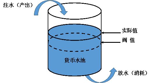 那么如何对货币的产出消耗进行调控呢?打个形象的比方,游戏的货币体系就好比一个水池,游戏中各系统的货币产出就相当于往这个水池中注水,货币产出途径通常有掉落、任务、活动、奖励等,而各系统的货币消耗就相当于对这个水池进行放水,货币消耗途径通常有日常消耗、装备升级、角色成长、特色系统等。货币水池如下图所示。