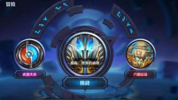 在《王者荣耀》中,冒险模式的玩法分为三种:挑战模式、武道大会、六国远征。