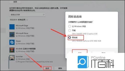 5、在图形界面中找到该游戏,打开选项页面,勾选高性能按钮并保存设置,即可实现游戏的独显运行。