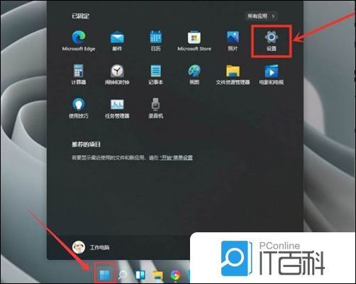 1、点击桌面的开始菜单,选择右上角的设置按钮。