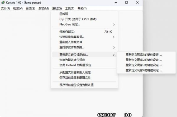 第四,在载入游戏之后,点击菜单的“游戏”,选择“重新定义键位设定”,选择“重新定义玩家1的键位设定”,然后在里面调整按键位置。