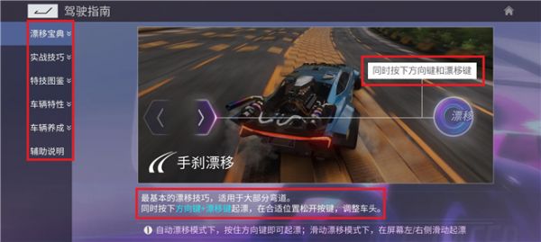 作为一款竞速游戏,竞速技巧的掌握也是必不可少的一部分。在速度节的驾驶指南中,会有漂移宝典和实战技巧等内容供玩家进行了解和学习,从而快速提升自己的竞速水平。