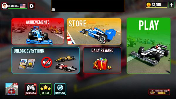 1、下载进入方程式赛车游戏,点击PLAY进入游戏;