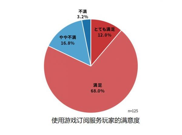 根据统计,只有4.3%的用户使用过游戏订阅制服务,但满意度却很高,有12%的玩家回答“非常满意”,68%的玩家回答“满意”,综合而言用户满意度达到了80%。