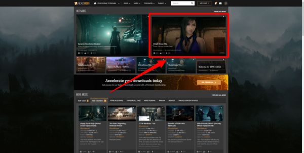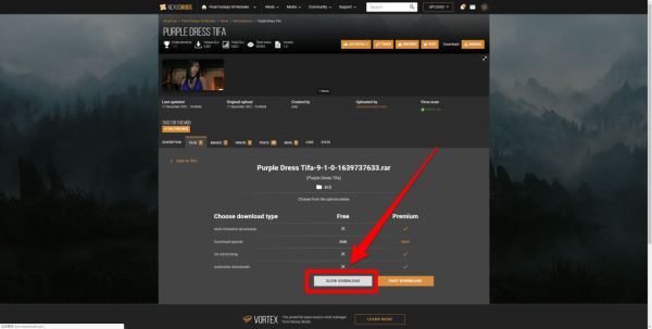 1、首先我们在网站上找到我们想要使用的mod,点击它,这里我们以蒂法的紫色连衣裙mod为例。(mod网站我会放在文章评论区,由于PC版刚出,目前mod并不是很多,过段时间大神mod就应该会出来了)