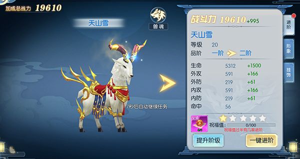 仙侠世界中有许多珍奇异兽、奇珍异宝,可以作为坐骑,为侠士们提供强力的帮助。各式坐骑,伴你畅游仙侠世界! 开启条件:完成主线任务“获得坐骑”后开启 功能入口:点击功能菜单,可见“坐骑”功能 功能消耗:坐骑进阶丹等 玩法介绍: 1、坐骑能够提升移动速度,漫漫仙侠之路,不必再靠双脚奔跑啦!~ 2、使用坐骑进阶丹驯养坐骑能够提升坐骑的生命、攻击、防御等属性,为主人提供强力的加成。 3、坐...